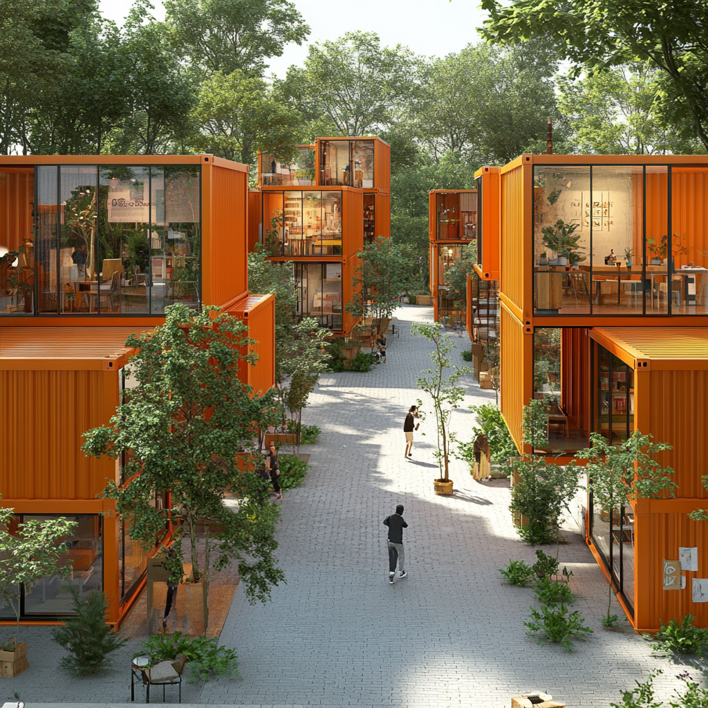 A vibrant network of modular units built for co-living, commerce, and collaboration. Stacked configurations create lively courtyards and walkable streetscapes, turning individual boxes into thriving shared environments.